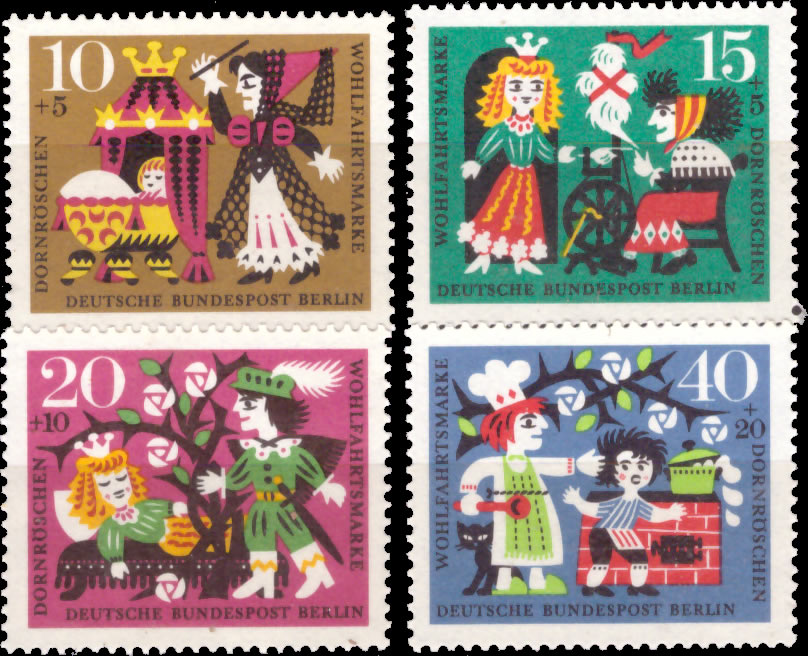 Briefmarken Berlin 1964, Mi.Nr. 237-240, Wohlfahrt: Märchen der Brüder Grimm (I): „Dornröschen“. Postfrisch