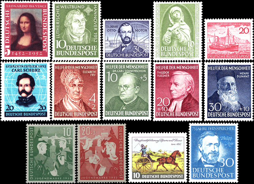 Briefmarken BRD (Bund) Jahrgang 1952 komplett, Mi.Nr. 148-161. Postfrisch