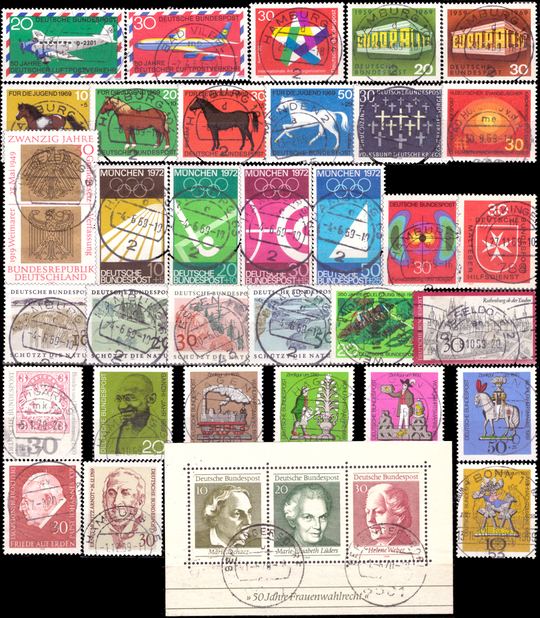 Briefmarken BRD (Bund) Jahrgang 1969 komplett, Mi.Nr. 576-611. Gestempelt