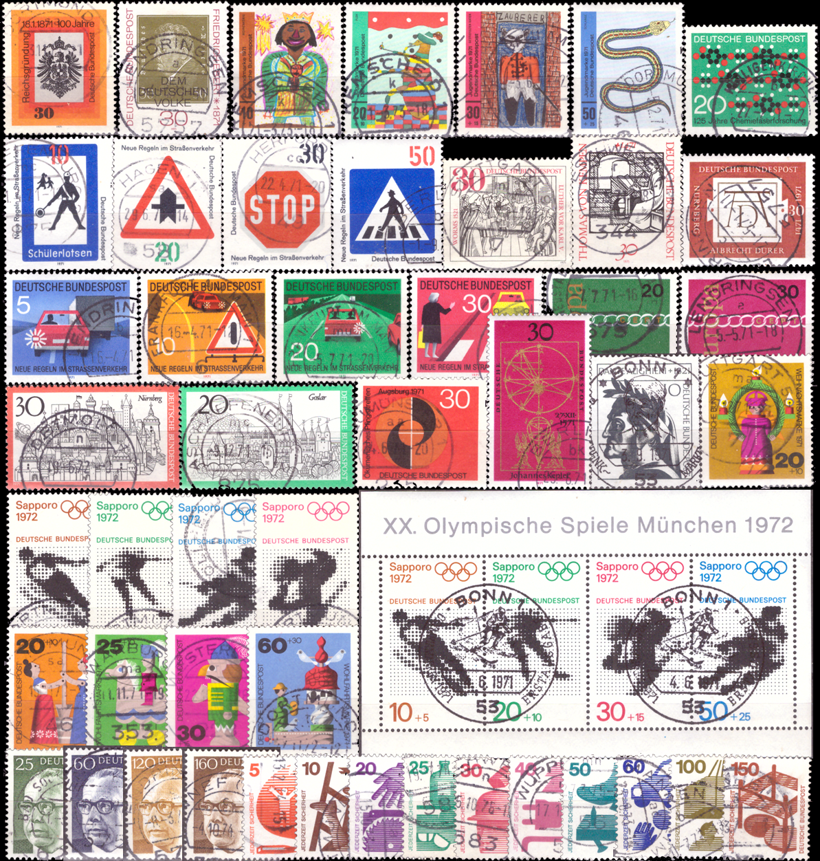 Briefmarken BRD (Bund) Jahrgang 1971 komplett, Mi.Nr. 658-709. Gestempelt