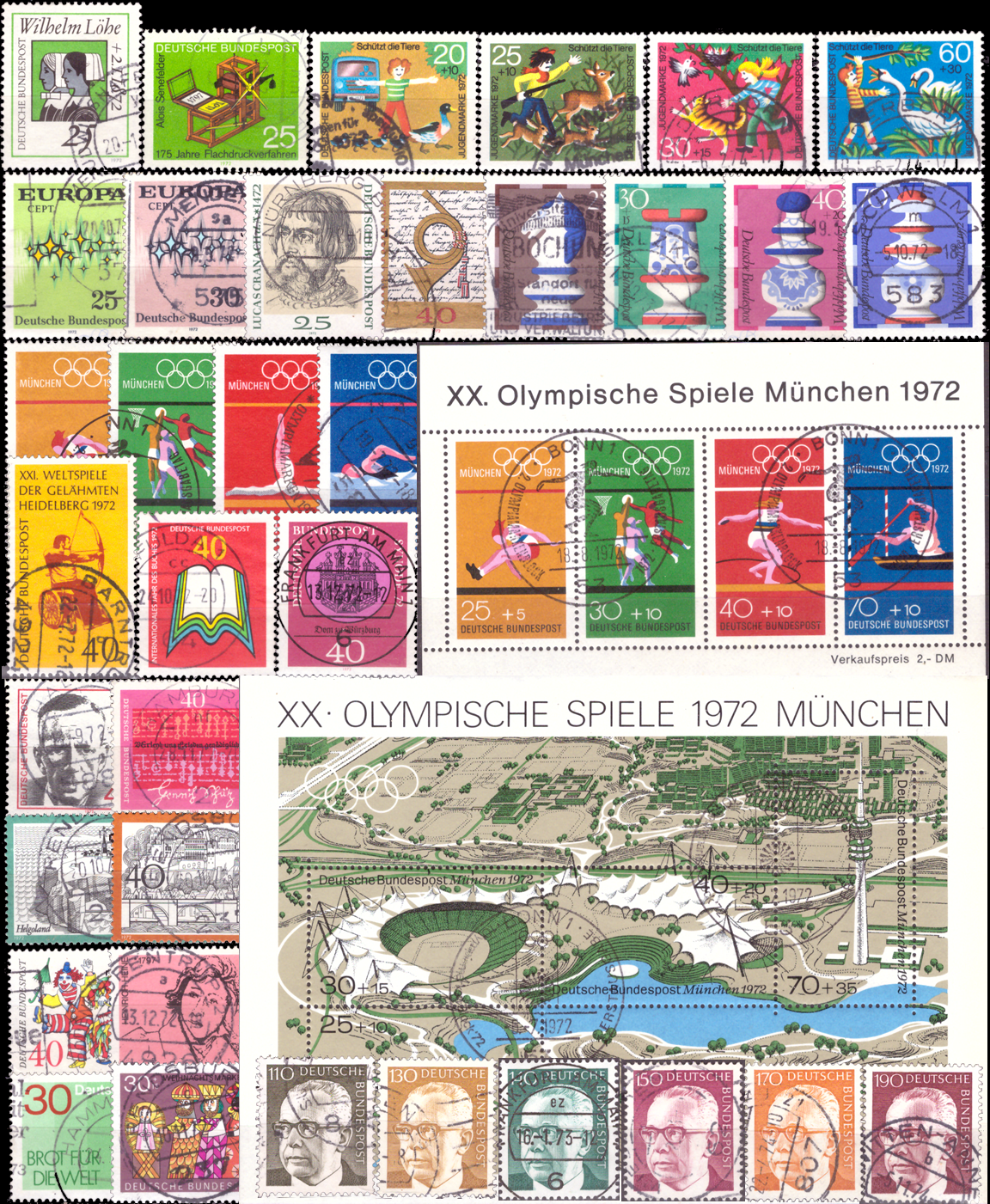 Briefmarken BRD (Bund) Jahrgang 1972 komplett, Mi.Nr. 710-752. Gestempelt