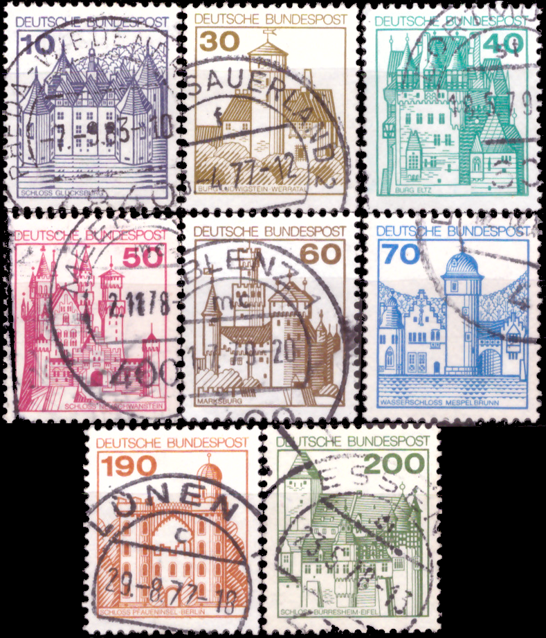 Briefmarken BRD (Bund) 1977, Mi.Nr. 913-920, Freimarken: Burgen und Schlösser (I). Gestempelt