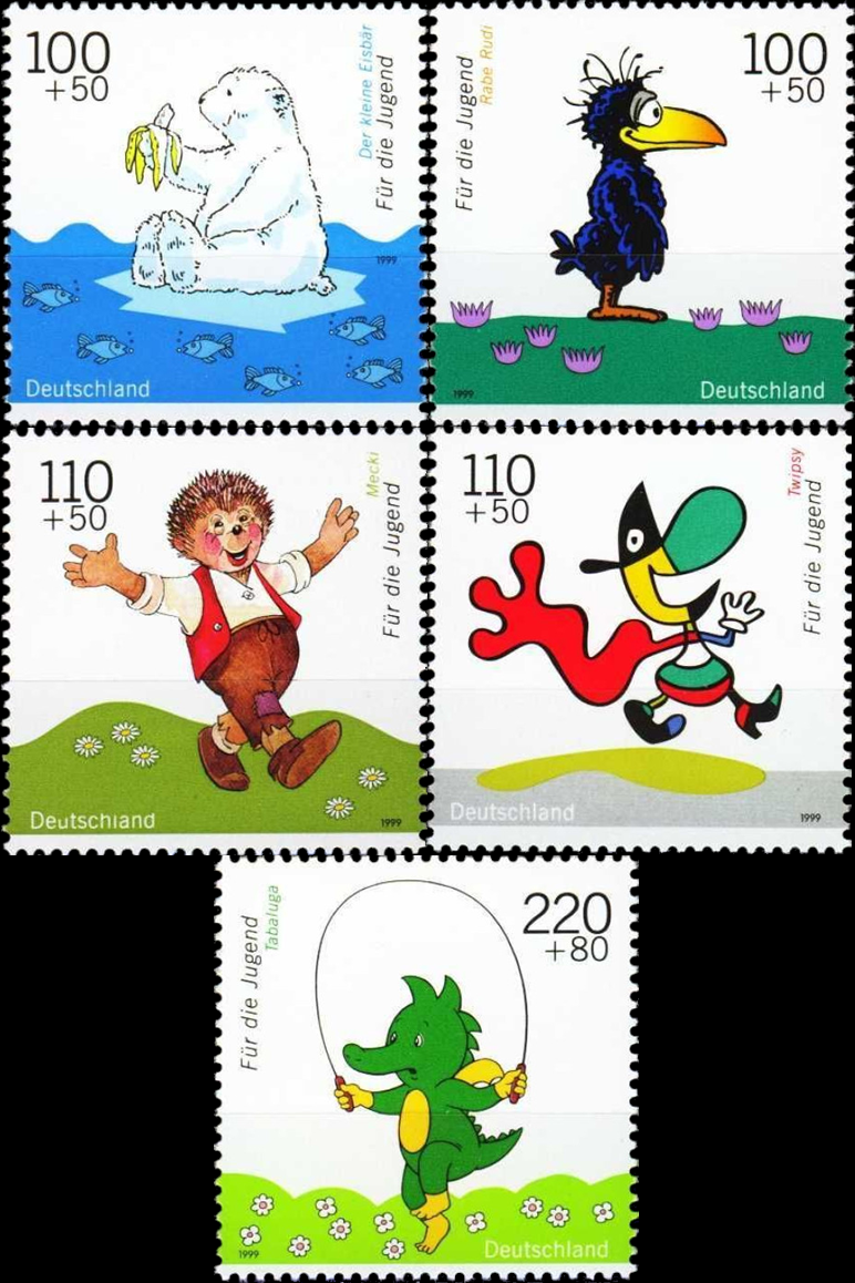 Briefmarken BRD (Bund) 1999, Mi.Nr. 2055-2059, Jugend: Trickfilmfiguren (II). Postfrisch