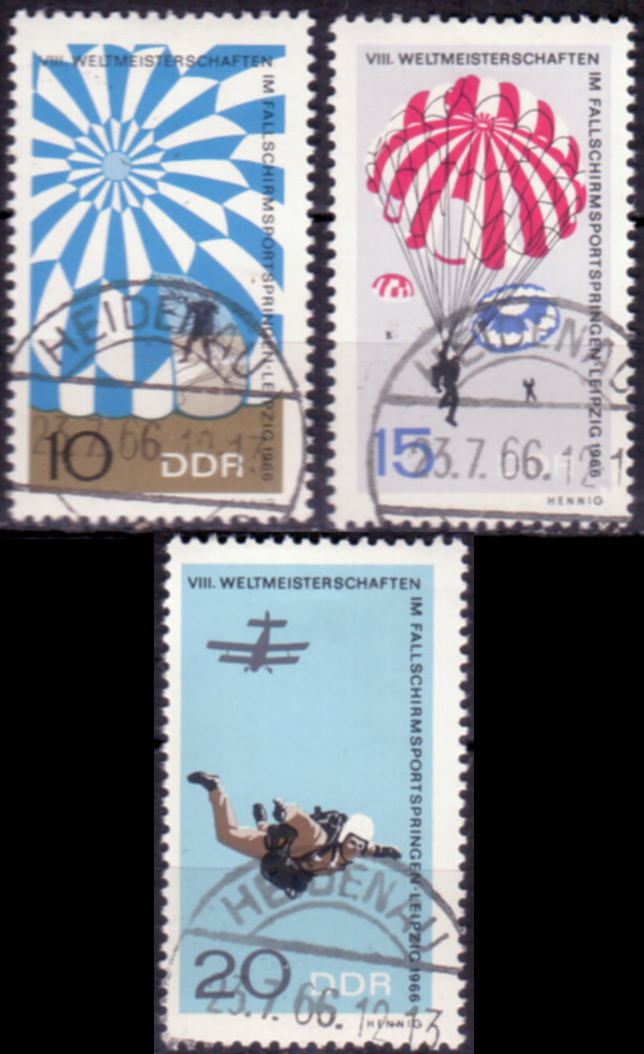 Briefmarken DDR 1966, Mi. Nr. 1193-1195, WM im Fallschirmspringen, Gestempelt
