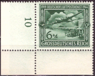 Briefmarken: Deutsches Reich 1944, Mi.Nr. 866 BE ul, Bogenecke unten links, Luftpostdienst, Postfrisch