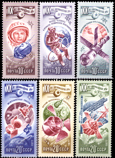 Briefmarken Sowjetunion 1977, Mi.Nr. 4648-4654, 20 Jahre Weltraumfahrt. Postfrisch