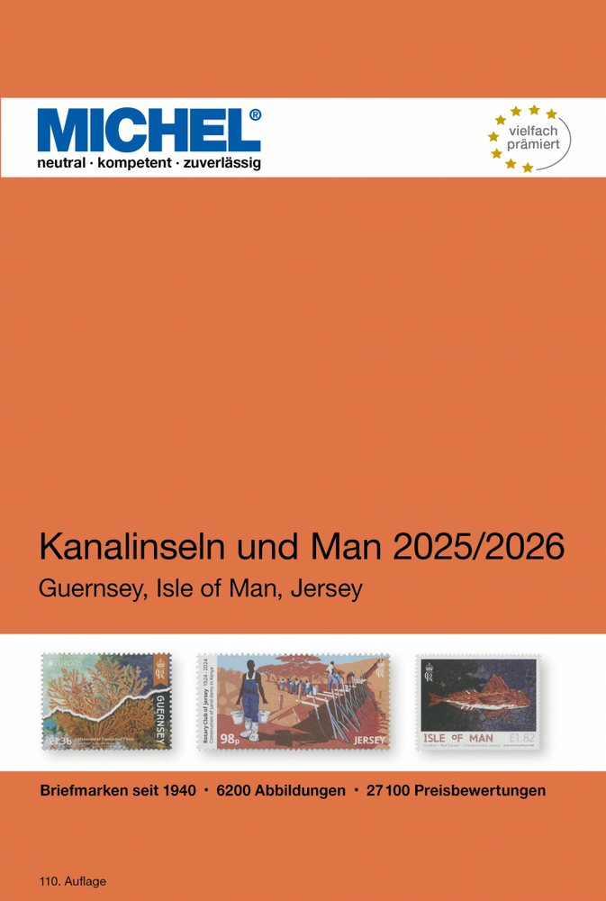 - Die redaktionellen Verbesserungen verteilen sich über das gesamte Werk. Wir vervollständigten die Gebietseinleitungen der Sammelgebiete um die Angabe der Währungen, Eintritt in den Weltpostverein sowie die MICHEL-Nummern derjenigen Marken, die aktuell frankaturgültig sind. Dies ist ein weiterer Schritt, Guernsey, Jersey und die Isle of Man als Hauptgebiete zu etablieren. Somit wird der Europa-Band 14 genauso selbstständig wie die Kronbesitzungen es politisch gegenüber Großbritannien sind.