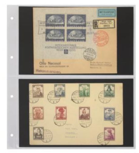 - mit zwei Taschen für 4 große Briefe, Ganzsachen, Belege oder Banknoten bis 235 x 140 mm