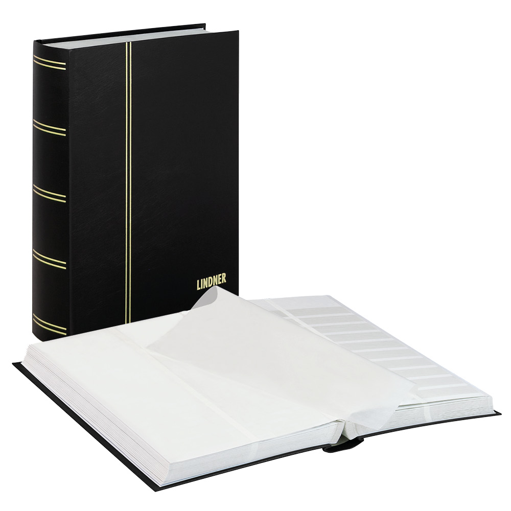 Lindner Einsteckbuch STANDARD, unwattiert, 64 weiße Seiten, geteilte Pergamin-Streifen, 230 x 305 mm, Schwarz
